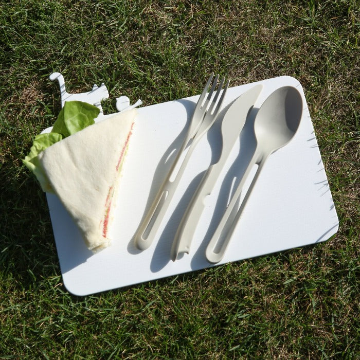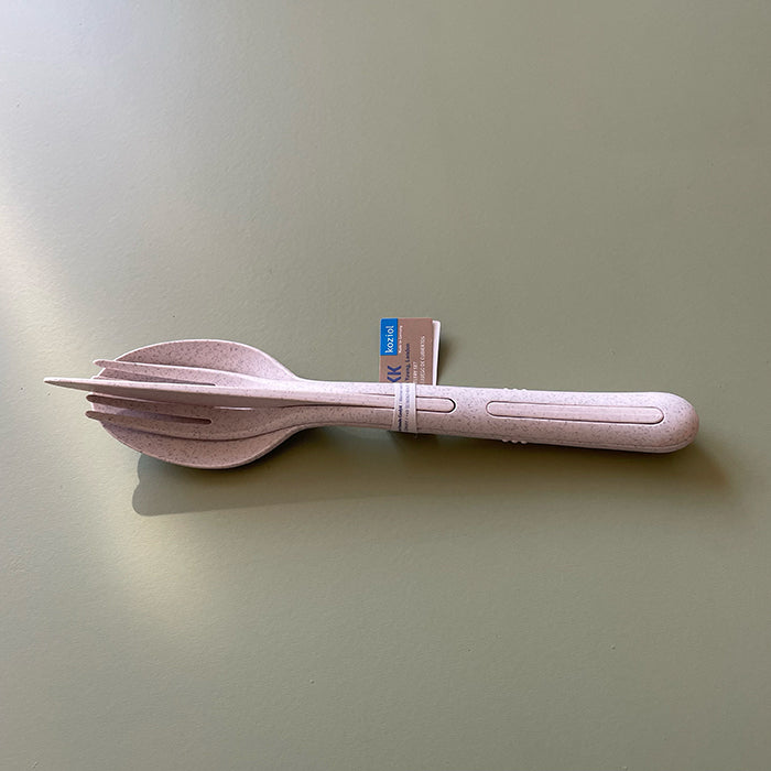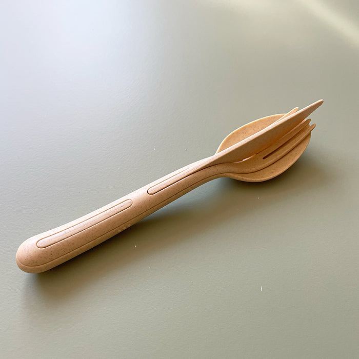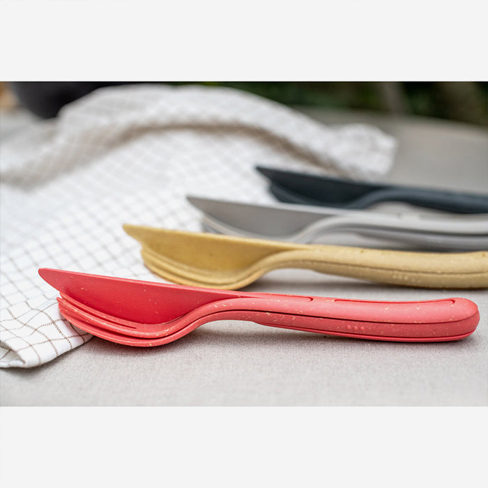 Dieses robuste Reisebesteck lässt sich einfach zusammenstecken und auseinandernehmen. Ideal für jeden Mitarbeiter zum Mitnehmen in der Tasche! Es wird ohne giftige Substanzen hergestellt, besteht aus recyceltem Material und ist äußerst robust.